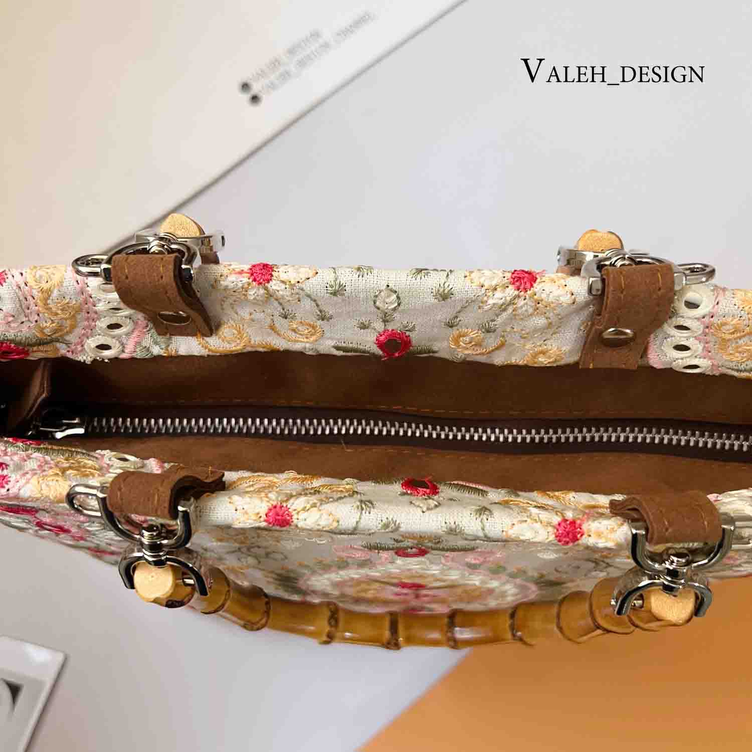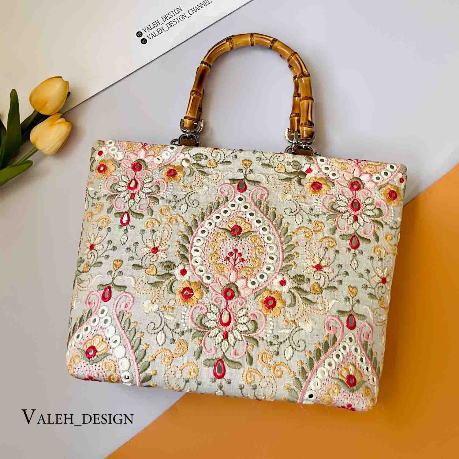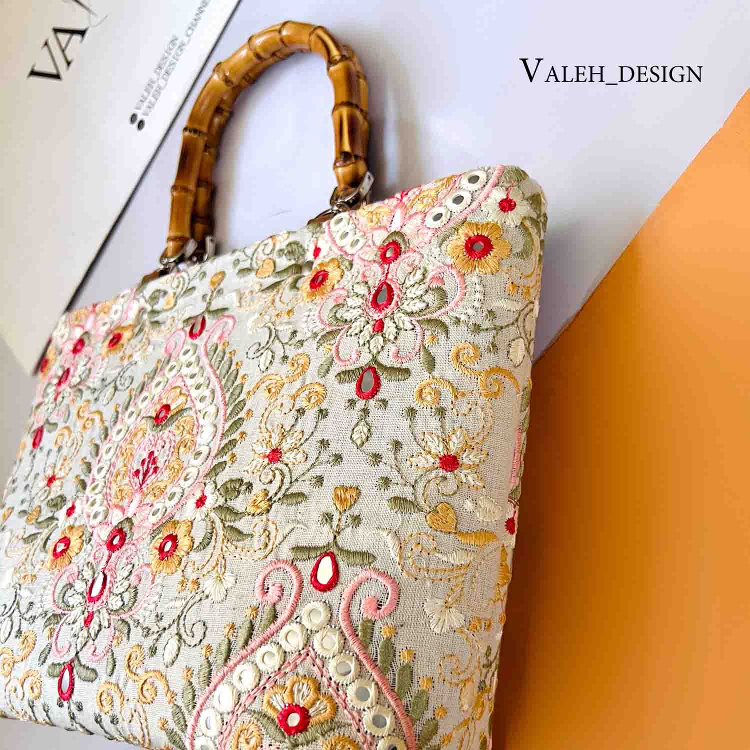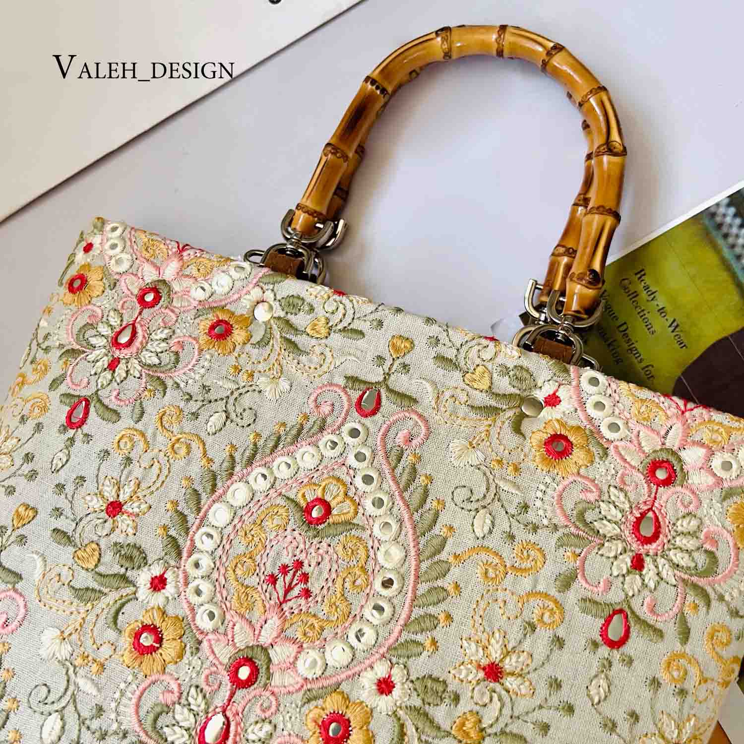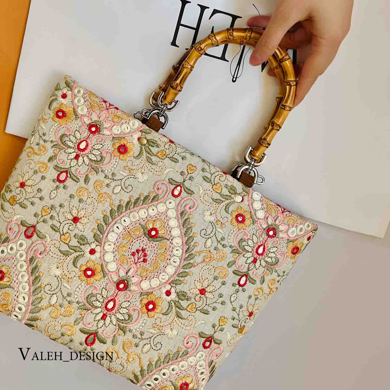 کیف واله : کیف دسته بامبو لینن سوزندوزی